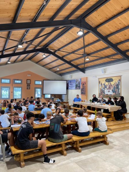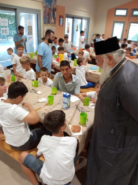 Κατόπιν ο Σεβασμιώτατος κ. Νεκτάριος, παρεκάθησε στο μεσημεριανό γεύμα, συνομίλησε με τα παιδιά, και τους ομίλησε για τη ζωή και το έργο του Αποστόλου Παύλου, καθότι η φετινή Κατασκήνωση, είναι Αφιερωμένη στον Πρώτο μετά τον Έναν και τις Περιοδείες του, και το όνομα της είναι «Βήματα Ελπίδας».