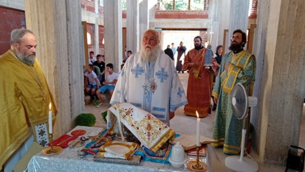 Σήμερα Κυριακή, τέλεσε την Θεία Λειτουργία στον υπό ανέγερση ιερό ναό των Κατασκηνώσεων, που τιμάται στους Αγίους Μεγαλομάρτυρες Δημήτριο και Νέστωρα.