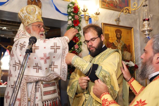 Στο τέλος της θείας λειτουργίας ο κ. Νεκτάριος χειροθέτησε σε πρωτοπρεσβύτερο τον εφημέριο της ενορίας π. Νεκτάριο Μπόκο.