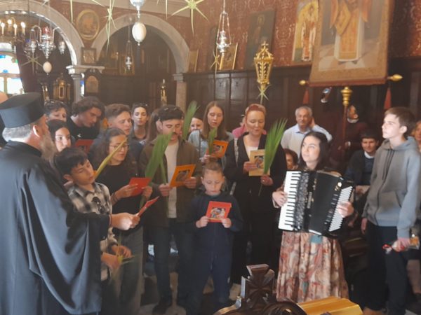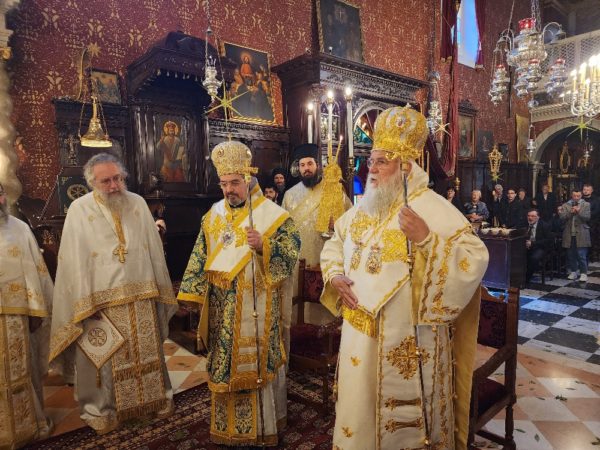 Μετά τη λειτουργία ο Σεβασμιώτατος δέχτηκε τον ομότιμο καθηγητή της Γλωσσολογίας του Πανεπιστημίου Αθηνών, πρώην υπουργό και πρύτανη κ. Γεώργιο Μπαμπινιώτη, με τον οποίο συνδέεται με δεσμούς φιλίας, ενώ μαζί παρακολούθησαν τα παραδοσιακά κάλαντα του Λαζάρου που απέδωσαν χορωδίες και φιλαρμονικές του νησιού, κατά το έθος.