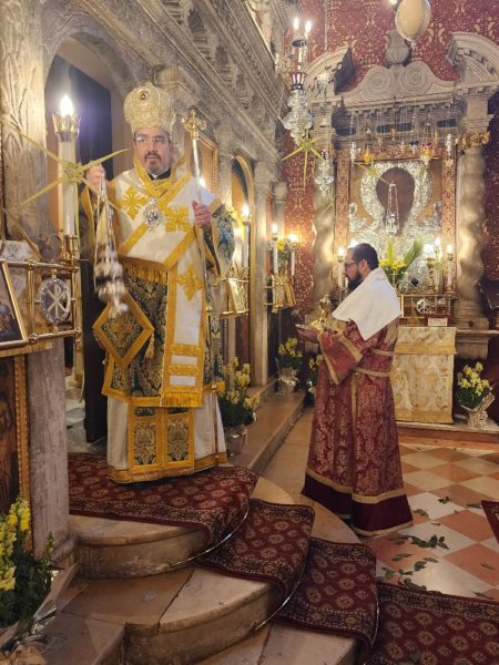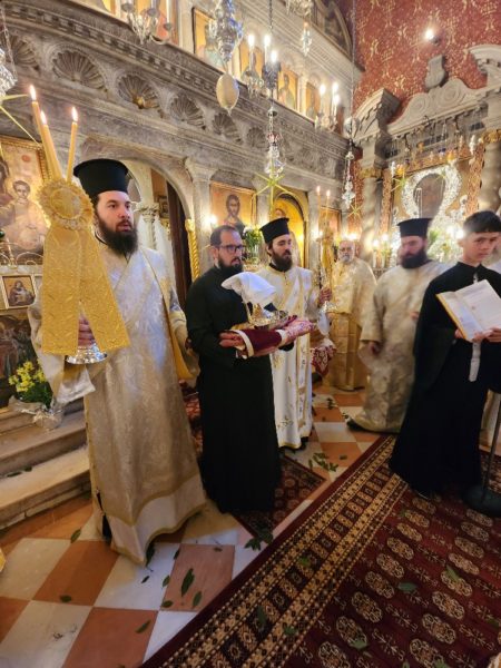 Ο Σεβασμιώτατος Μητροπολίτης Κερκύρας, Παξών και Διαποντίων Νήσων κ. Νεκτάριος λειτούργησε το Σάββατο του Λαζάρου, 27 Απριλίου 2024, στον Ιερό Ναό Αγίου Νικολάου Γερόντων της Κέρκυρας, όπου βρίσκεται τεθησαυρισμένο ιερό λείψανο του Αγίου Λαζάρου. Με τον Σεβασμιώτατο συλλειτούργησε ο Θεοφιλέστατος Επίσκοπος Κοτυαίου κ. Διονύσιος, βοηθός του Μητροπολίτη Ιταλίας κ. Πολυκάρπου.