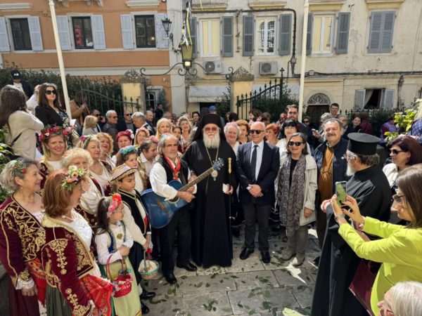 Στο πέρας της θείας λειτουργίας, κατά το κερκυραϊκό έθιμο, παιδικές χορωδίες, φιλαρμονικές, μαντολινάτες ήρθαν για να πούνε τα κάλαντα του Λαζάρου στον Σεβασμιώτατο.