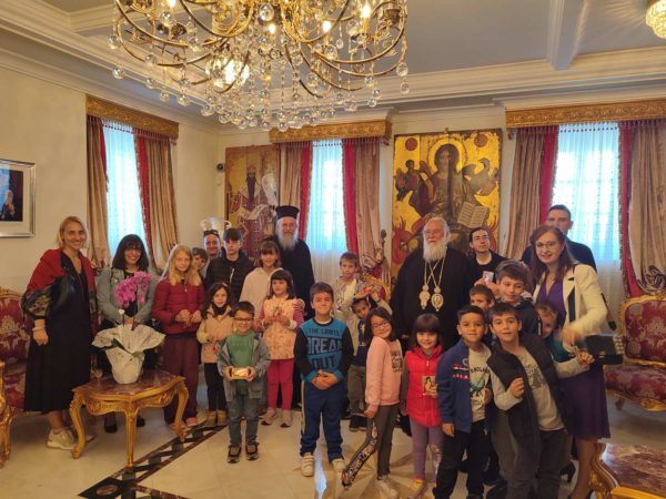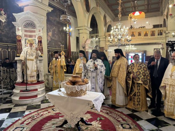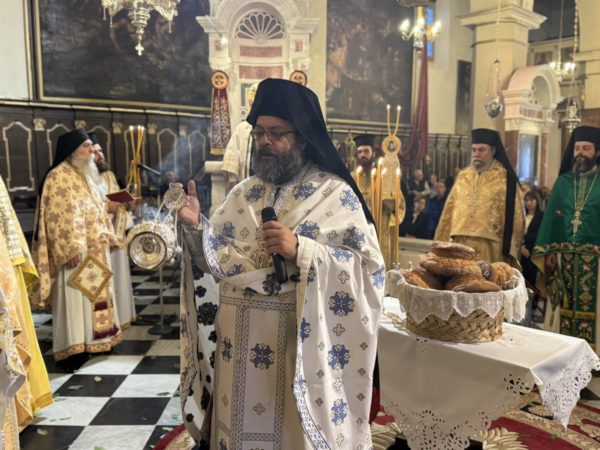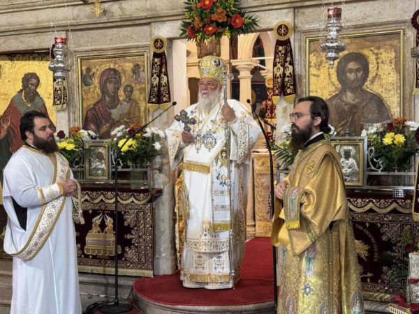 Με το πέρας της Θείας Λειτουργίας ο Σεβασμιώτατος δέχτηκε ευχές από τον κλήρο, τους άρχοντες και τον λαό.