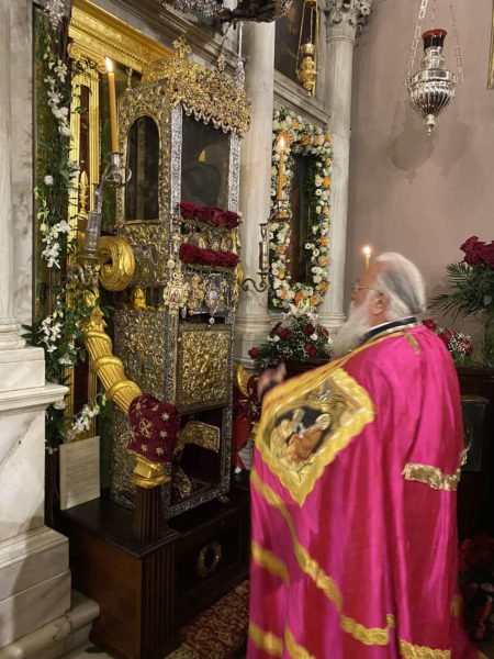Ο κ. Νεκτάριος ευχαρίστησε τον Μητροπολίτου Σύρου κ. Δωρόθεο, με τον οποίο συνδέεται διά μακροχρονίου φιλίας και συμπορεύσεως, όπως επίσης και τον λαό του Θεού που κατέκλυσε το ιερό προσκύνημα, για να συμπανηγυρίσει την μεγάλη εορτή.
