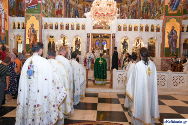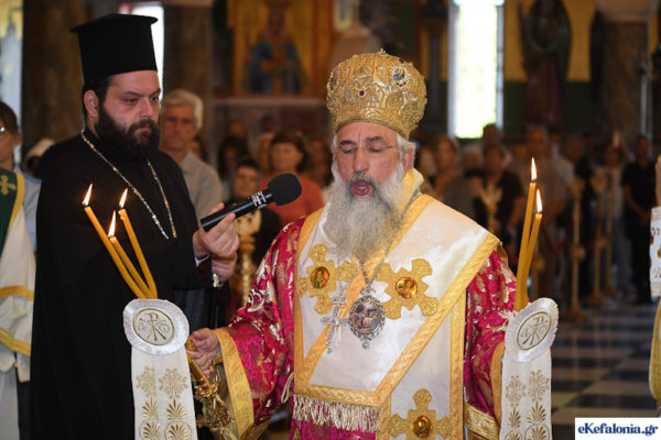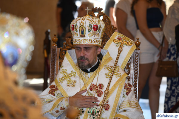 Την Παρασκευή 16 Αυγούστου 2024, στην Ακολουθία του Όρθρου και στη Θεία Λειτουργία χοροστάτησε ο Αρχιεπίσκοπος Κρήτης κ. Ευγένιος, συγχοροστατούντων των Μητροπολιτών, Λαρίσης και Τυρνάβου κ. Ιερώνυμου, Τερνοπόλεως κ. Νέστορα από την εμπόλεμη Ουκρανία και του οικείου Μητροπολίτη Κεφαλληνίας κ. Δημητρίου.