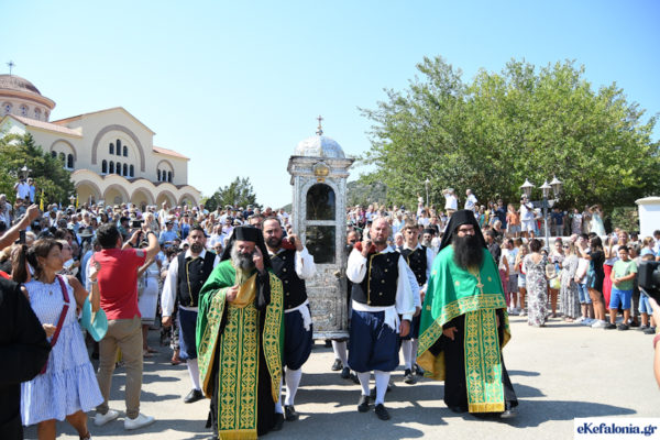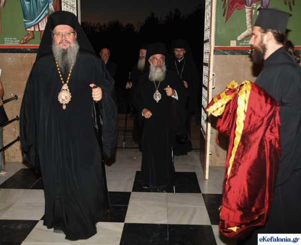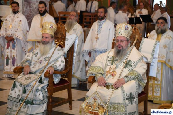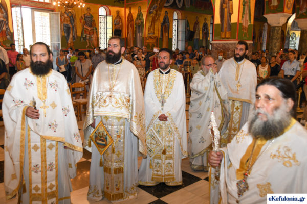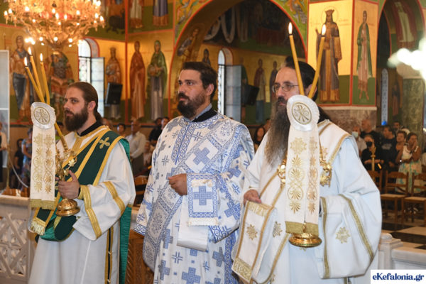 Με τους πιστούς να συρρέουν συνεχώς και σε πραγματικό κλίμα κατάνυξης, ολοκληρώθηκε την Πέμπτη, 15 Αυγούστου 2022, ο λαμπρός πολυαρχιερατικός εσπερινός στην μεγάλη εκκλησία του Αγίου Γερασίμου στα Ομαλά, για την εορτή της Κοίμησης του Πολιούχου της Κεφαλονιάς.