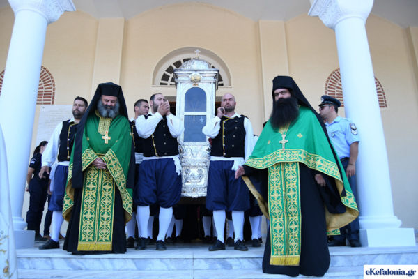 Με λαμπρότητα εορτάστηκε η Κοίμηση του Αγίου Γερασίμου στην Κεφαλονιά στις 15 και 16 Αυγούστου, με Πολυαρχιερατικό Συλλείτουργο και Λιτανεία του σκηνώματος του Αγίου.