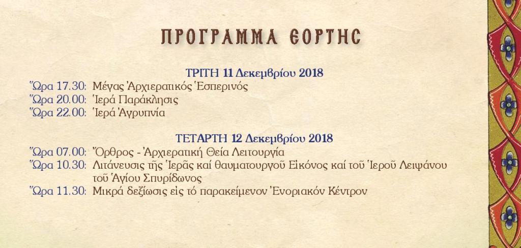 Η πόλις της Κισάμου εορτάζει τον προστάτη και πάτρωνα της Άγιο Σπυρίδωνα. Οι λατρευτικές εκδηλώσεις θα διεξαχθούν με βάση το ακόλουθο πρόγραμμα :