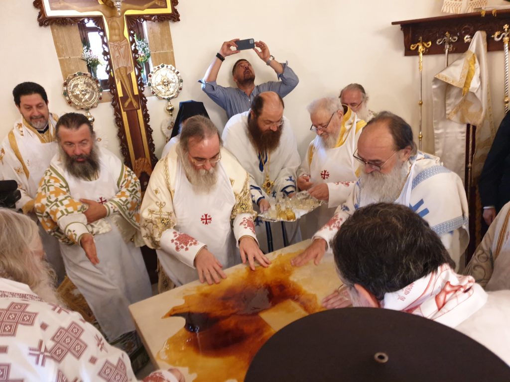 Με τελετουργικό γεμάτο ιερούς συμβολισμούς της Εκκλησίας που έλκει την καταγωγή του από τα Πρωτοχριστιανικά χρόνια καθαγιάσθηκαν όλα τα αντικείμενα της Αγίας Τράπεζας.