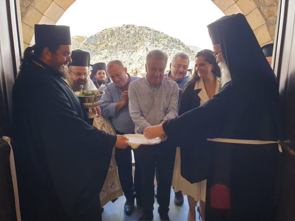 Την κορδέλα έκοψε ο Μητροπολίτης Κισάμου και Σελίνου κ. Αμφιλόχιος μαζί με τον Περιφερειάρχη Κρήτης κ. Σταύρο Αρναουτάκη και το δήμαρχο κ. Γιώργο Μυλωνάκη.