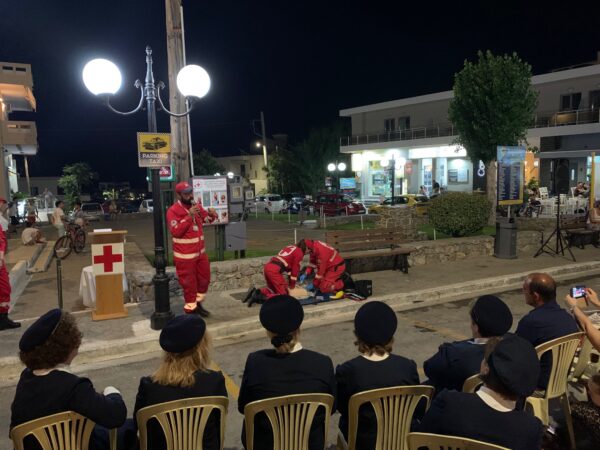 Ακολούθησε από τους Εθελοντές Σαμαρείτες του Π.Τ. Κισάμου επίδειξη χρήσης του αυτόματου απινιδωτή με συντονιστή τον Αρχηγό του Σώματος Εθελοντών κ. Στέφανο Καπή. Εγκάρδιο χαιρετισμό απέστειλε ο Πρόεδρος του ΕΕΣ Δρ. Αντώνιος Αυγερινός. Οι Πρόεδροι των Π.Τ. Χανίων και Ρεθύμνου απεύθυναν, επίσης, χαιρετισμό. Συμμετείχαν εκπρόσωποι της Τοπικής Αυτοδιοικήσεως, τα μέλη του Δ.Σ. του Π.Τ. ΕΕΣ Κισάμου, Πρόεδροι Φορέων και Συλλόγων και αρκετοί πολίτες της Κισάμου. Κατόπιν προτάσεως της Προέδρου του Δ.Σ. Κισάμου κας Νίκης Κατερινάκη το Π.Τ. ΕΕΣ Κισάμου θα οργανώσει, σε άμεσο χρόνο, σεμινάρια εκπαίδευσης χρήσης του απινιδωτή για τους επιχειρηματίες της περιοχής ως και όσους άλλους ενδιαφέρονται.