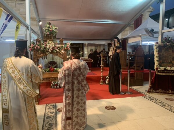 Χαιρέτισε, καλοσώρισε και ευχαρίστησε τον εκπρόσωπο του Προέδρου της Ελληνικής Κυβερνήσεως, Υφυπουργό Παιδείας και Θρησκευμάτων κ. Βασίλη Διγαλάκη, τον Δήμαρχο Πλατανιά κ. Ιωάννη Μαλανδράκη, εκπροσώπους της Περιφέρειας και της Τοπικής Αυτοδιοικήσεως ως και τα πλήθη των ευλαβών προσκυνητών. Ιδιαιτέρως ευχαρίστησε την Ελληνική Αστυνομία δια την συμβολή της στην ομαλή και ασφαλή προσέλευση των προσκυνητών, το Τμήμα Εθελοντών Σαμαρειτών ΕΕΣ Κισάμου, εξόχως δε τον επιχειρηματία κ. Ιάκωβο Χονδράκη, ο οποίος οργάνωσε (ευγενώς προσφερόμενος) τον αύλειο χώρο της Ι. Πατριαρχικής Μονής Οδηγητρίας Γωνιάς (τέντες, εξέδρες, χαλιά, φωτισμός, κλιματισμός, κιγκλιδώματα, μικροφωνικές εγκαταστάσεις κ.α.) διαθέτοντας και μεγάλο αριθμό εκ του προσωπικού του, δημιουργώντας τις προϋποθέσεις δια την τέλεση όλων των Ι. Ακολουθιών του εόρτιου διημέρου εις τον προαύλιο χώρο της Μονής. Γεγονός το οποίο συνέβαλε, ουσιαστικά, εις την προσέλευση του πλήθους των προσκυνητών με ασφάλεια και άνευ συνωστισμού, σύμφωνα με τα ισχύοντα. Η Ι. Αγρυπνία τελέστηκε εντός του Καθολικού της Μονής. Τους χορούς των ψαλτών κόσμησε ο Άρχων Πρωτοψάλτης του Οικουμενικού Πατριαρχείου κ. Φώτιος Γιαννακάκης με τους ιεροψάλτες της Μονής.