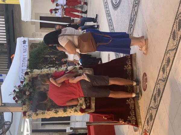 Το πρωί της παραμονής ο Σεβ. Μητροπολίτης Κισάμου και Σελίνου κ. Αμφιλόχιος τέλεσε την Θεία Λειτουργία εις την Ι. Μονή Χρυσοσκαλιτίσσης, τις δε Ι.Ακολουθίες και πανηγυρική Θεία Λειτουργία του διήμερου εις την Ι. Πατριαρχική και Σταυροπηγιακή Μονή Οδηγητρίας Γωνιάς. Πλήθη ευλαβών προσκυνητών προσέτρεξαν και στις δύο ιστορικές αυτές Μονές της Δυτικής Κρήτης, αναμένοντας υπομονετικά επί ώρες πολλές έως ότου προσκυνήσουν τις ιερές και Θαυματουργές Εικόνες της Παναγίας, καταθέτοντας δεήσεις, ικεσίες, προσευχές και ευγνωμοσύνη.