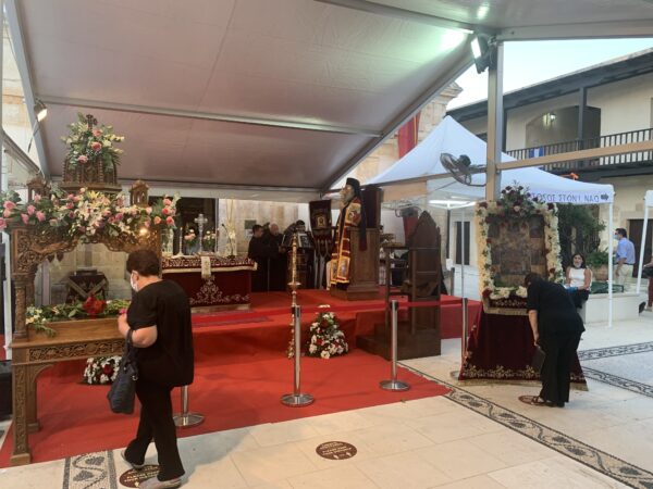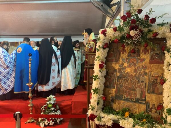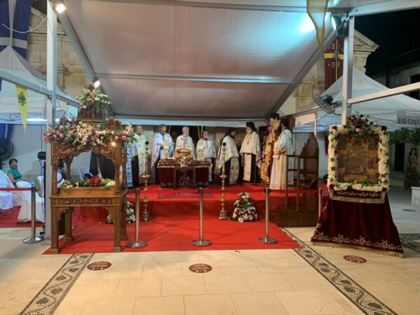 «Δέος και ευλάβεια ενώπιον του σεπτού προσώπου της Παναγίας Μητέρας μας. Ποιός, αλήθεια, δεν επικαλείται το πανάγιο Όνομά Της στις χαρές και τις λύπες της ζωής του; Στις δοκιμασίες, στις θλίψεις, στις αγωνίες, στους πόνους, στις ασθένειες και στους πειρασμούς; Εκείνη είναι και παραμένει το σταυροδρόμι της πίκρας και της αισιοδοξίας, της ασθένειας και της χάρης, στην ιστορία του κόσμου και την προσωπική μας ζωή και ιστορία. Όμως, αδελφοί μου, ο φετινός εορτασμός της σεπτής Κοιμήσεως και της εις ουρανούς μεταστάσεώς Της, ο φετινός Δεκαπενταύγουστος, είναι διαφορετικός από όλους τους προηγούμενους της ζωής μας. Βιώνουμε πρωτόγνωρες εμπειρίες, όχι μόνον εμείς, αλλά ολόκληρος ο κόσμος, η ανθρωπότητα στο σύνολό της. Ζούμε μια νέα, διαφορετική πραγματικότητα τους τελευταίους μήνες. Πραγματικότητα, που όχι μόνο άλλαξε, αλλά ανέτρεψε την ζωή μας στο σύνολό της. Ανέτρεψε παγκόσμιες οικονομίες και προγραμματισμούς. Πραγματικότητα, που μας γεμίζει φόβο, αγωνία, ανησυχία, αβεβαιότητα και αδυναμία υπέρβασής της. …..Ας μην απογοητευόμεθα, αδελφοί, και ας μην μας τρομάζει κανείς φόβος, καμία δυσκολία και καμία περιπέτεια της ζωής. Ας υψώσουμε χείρες ικέτιδες προς την Θεομάνα και Μητέρα όλου του κόσμου, την γλυκιά μας Παναγία. Ας την παρακαλέσουμε όπως ανοίξει διάπλατα τον νου και την καρδιά μας για να δεχθούμε τον φωτισμό της Χάρης του Θεού και του Αγίου Πνεύματος. Για να μας χαρίσει ελπίδα και χαρά. Για να γλυκάνει τα δάκρυα και τους πόνους της ζωής. Ας την παρακαλέσουμε, τέλος, ως Υπέρμαχο Στρατηγό, να σκέπει και να φρουρεί τον κόσμον όλο, εξόχως και ιδιαιτέρως δε τον Παναγιώτατο Οικουμενικό μας Πατριάρχη κ.κ. Βαρθολομαίο, τον Πρόεδρο των Ορθοδόξων και Πατριάρχη του Γένους, του Οποίου η καρδία κατωδύνεται με όλα όσα συμβαίνουν εις «τα μάρμαρα της Πόλης», ευχόμενος «Καλή Παναγία».