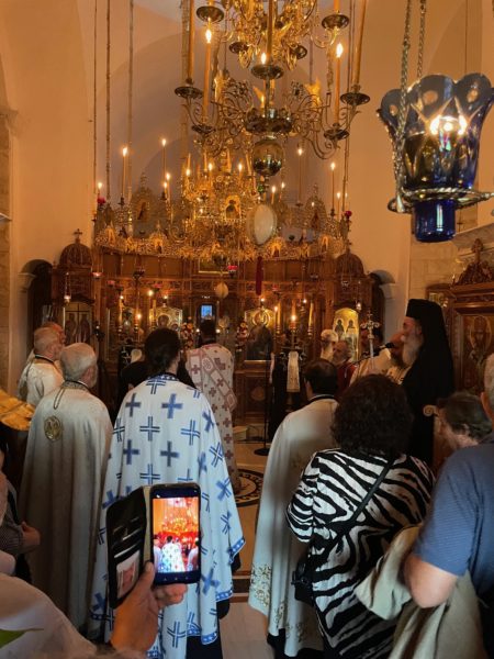Του εόρτιου Εσπερινού χοροστάτησε ο Σεβ. Μητροπολίτης Κισάμου και Σελίνου κ. Αμφιλόχιος με την συμμετοχή πλήθους Κληρικών εκ της Ιεράς Μητροπόλεως, της όμορης Ιεράς Μητροπόλεως Κυδωνίας και Αποκορώνου, προεξάρχοντος του ιερού Κλήρου, ο Πανοσιολογιώτατος Ιερομόναχος π. Χερουβίμ, αδελφός της Ιεράς Σταυροπηγιακής και Συνοδικής Μονής Οσίου Συμεών του νέου Θεολόγου (Κάλαμος Αττικής), κατά σάρκα υιός των αοιδίμων και εν χώρα ζώντων αναπαυομένων κτητόρων του Ιερού Ναού, Δημητρίου και Μαρίας.