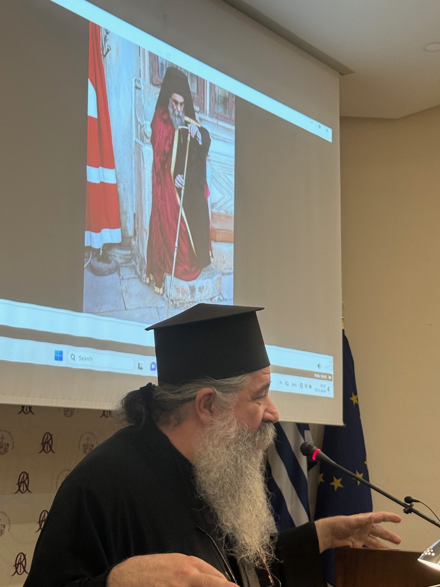 Ακολούθησε ομιλία υπό του Αιδ. Πρωτ. π. Γεωργίου Σχοινά, Κληρικού της Ιεράς Αρχιεπισκοπής Αθηνών, με θέμα: «Ο Επίσκοπος, πατέρας, θεσμός και χάρισμα!». Ο εκλεκτός ομιλητής, με λόγο μεστό και ζείδωρο, αναφέρθηκε στο χάρισμα της Αρχιερωσύνης ως και πως ο Επίσκοπος, σύμφωνα με τους Πατέρες, εκπληρώνει την αποστολή του.