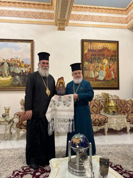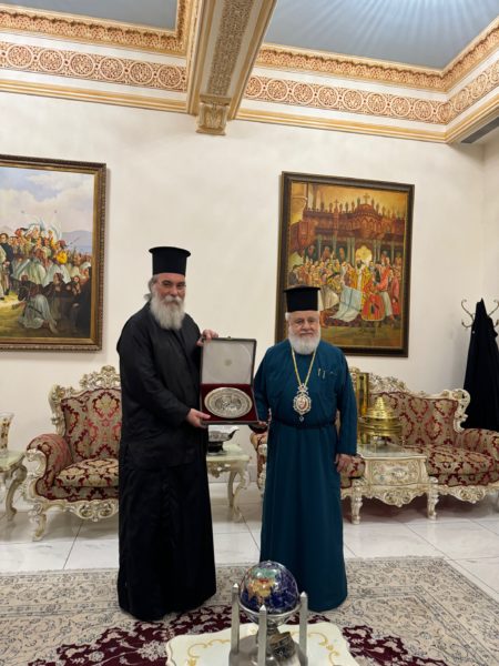 Δεχόμενος την φιλοξενία και φιλάδελφο αγάπη των Ιεραρχών της Εκκλησίας της Κύπρου, ο Σεβασμιώτατος Μητροπολίτης Κισάμου και Σελίνου κ. Αμφιλόχιος αντιδωρούσε με αγιογραφημένη Εικόνα του Οσίου Νικηφόρου του Λεπρού, τον Οποίο ιδιαίτερα ευλαβούνται στην Κύπρο, προσφέροντας, επίσης, και πρόσφατες εκδόσεις της Ιεράς Μητροπόλεως.