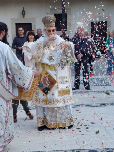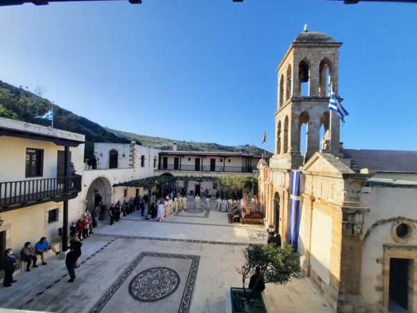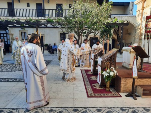 Ο Σεβασμιώτατος Μητροπολίτης Κισάμου και Σελίνου κ. Αμφιλόχιος, στον σύντομο χαιρετισμό του, αναφέρθηκε στο γεγονός της Ανάστασης ως «την Άνοιξη της ζωής μας», όπως είπε, καθώς: «Αναζωογονείται η ελπίδα, ανατέλλει η Άνοιξη, νικά η αγάπη, φωτίζονται οι καρδιές, διαλύεται ο φόβος, η κατήφεια, ανοίγεται και πάλι η θύρα του Παραδείσου», καλώντας τους πολυπληθές προσκυνητές της Μονής, οι οποίοι είχαν εξακτινωθεί στο άνετο και περικαλλή προαύλιο χώρο της Μονής όπου τελέστηκε και ο Εσπερινός, να αντλούν θάρρος, δύναμη και πίστη από την Ανάσταση του Χριστού μας. «Η επικράτηση του κακού όσο και αν μας τρομάζει είναι πρόσκαιρη. Το φώς πάντα νικά το σκοτάδι, τα σύννεφα όσο και αν κρύψουν τον ήλιο δεν μπορούν να τον αφανίσουν», σημείωσε. Ακολούθησε η διανομή των πασχαλινών αυγών και τσουρεκιών.