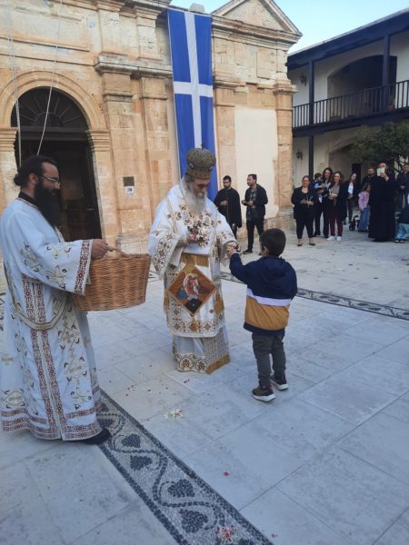 Ο Σεβασμιώτατος Μητροπολίτης Κισάμου και Σελίνου κ. Αμφιλόχιος, στον σύντομο χαιρετισμό του, αναφέρθηκε στο γεγονός της Ανάστασης ως «την Άνοιξη της ζωής μας», όπως είπε, καθώς: «Αναζωογονείται η ελπίδα, ανατέλλει η Άνοιξη, νικά η αγάπη, φωτίζονται οι καρδιές, διαλύεται ο φόβος, η κατήφεια, ανοίγεται και πάλι η θύρα του Παραδείσου», καλώντας τους πολυπληθές προσκυνητές της Μονής, οι οποίοι είχαν εξακτινωθεί στο άνετο και περικαλλή προαύλιο χώρο της Μονής όπου τελέστηκε και ο Εσπερινός, να αντλούν θάρρος, δύναμη και πίστη από την Ανάσταση του Χριστού μας. «Η επικράτηση του κακού όσο και αν μας τρομάζει είναι πρόσκαιρη. Το φώς πάντα νικά το σκοτάδι, τα σύννεφα όσο και αν κρύψουν τον ήλιο δεν μπορούν να τον αφανίσουν», σημείωσε. Ακολούθησε η διανομή των πασχαλινών αυγών και τσουρεκιών.