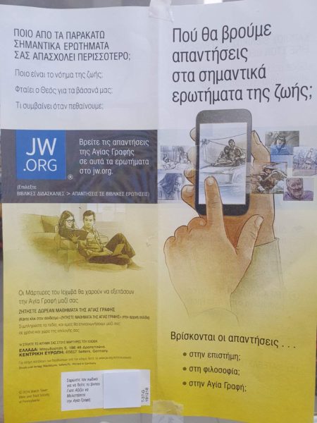 03/02/2024 03/02/2024 Πλήθος ανθρώπων του τόπου και της ευρύτερης περιοχής επικοινώνησαν με την Ιερά Μητρόπολη Κισάμου και Σελίνου ενημερώνοντας ότι οργανωμένες ομάδες που ανήκουν στους «Χιλιαστές» ή «Μάρτυρες του Ιεχωβά» κινούνται στην Κίσαμο και την ευρύτερη περιοχή, διανέμοντας φυλλάδια, καλώντας τους αποδέκτες όπως επικοινωνήσουν, διαδικτυακά ή ταχυδρομικά μαζί τους, εάν θέλουν να βρουν απαντήσεις στο «Ποιο είναι...