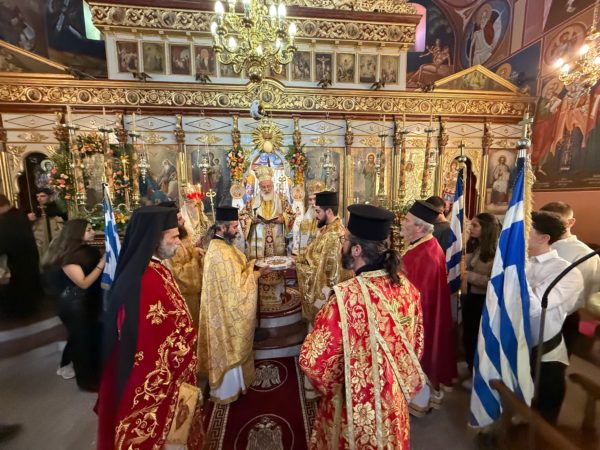 Την κυριώνυμο ημέρα τελέστηκε τρισαρχιερατική Θεία Λειτουργία, προεξάρχοντος του Σεβ. Μητροπολίτου Αρκαλοχωρίου, Καστελλίου και Βιάννου κ. Ανδρέου και συλλειτουργούντων των Σεβ. Μητροπολιτών Κυδωνίας και Αποκορώνου κ. Δαμασκηνού, ο οποίος και κήρυξε, και του Σεβ. Ποιμενάρχου κ. Αμφιλοχίου.