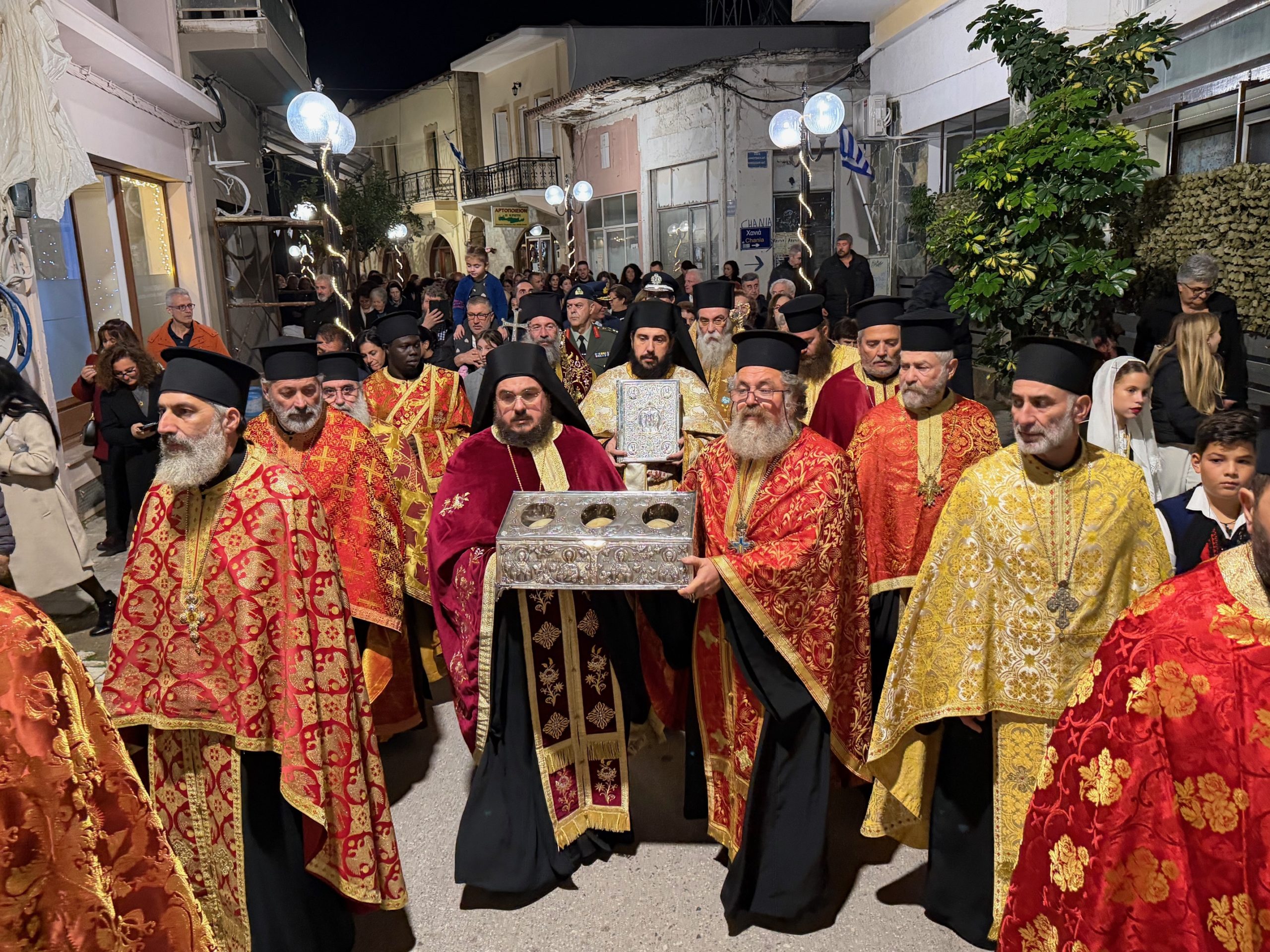 Προσκεκλημένος του Σεβ. Μητροπολίτου Κισάμου και Σελίνου κ. Αμφιλοχίου, ο Σεβ. Μητροπολίτης Ρεθύμνης και Αυλοποτάμου κ. Πρόδρομος, κόμισε τις Τίμιες Κάρες των Αγίων Τεσσάρων Μαρτύρων, προς ευλογία και αγιασμό. Της υποδοχής των Τιμίων Καρών ακολούθησε Ευχαριστιακή Δέησης και Μέγας Εσπερινός, χοροστατούντος του Σεβ. Μητροπολίτου Ρεθύμνης και Αυλοποτάμου κ. Προδρόμου, ο οποίος και ομίλησε, με λόγο μεστό και ζείδωρο, ευχαριστώντας τον Σεβ. Ποιμενάρχη κ. Αμφιλόχιο «δια την φιλάδελφο πρόσκληση», σημειώνοντας μεταξύ άλλων: