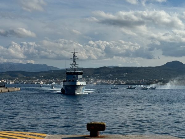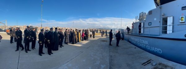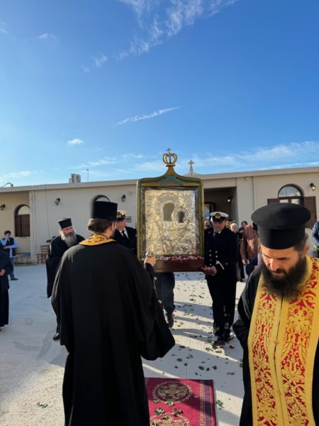 Ακολούθως προσέφερε εις τον Αρχηγό του Λιμενικού Σώματος αγιογραφημένη Εικόνα του Αγίου Σπυρίδωνος, ευχαριστώντας τον «δια την ουσιαστική αρωγή ελεύσεως της Παναγίας μας».