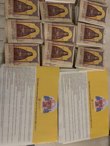 Εις τους Ιερείς διανεμήθηκαν Παρακλητικοί Κανόνες του Οσίου Νικηφόρου δια τους Ενορίτες τους και ενημερωτικά Φυλλάδια του Υπουργείου Υγείας που αφορούν οδηγίες και μέτρα πρόληψης και προστασίας από τον κορωνοϊό, τα οποία το Αννουσάκειο Ίδρυμα της Μητροπόλεως είχε προμηθευτεί από την 7 η ΥΠΕ Κρήτης.