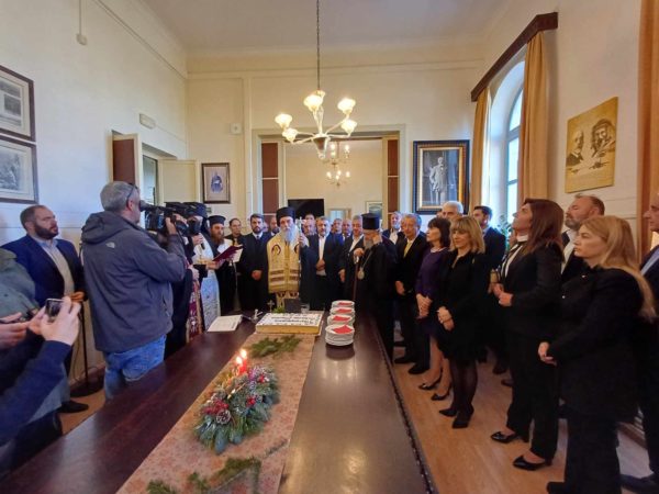 Κατόπιν προσκλήσεως του Αντιπεριφερειάρχη Χανίων κ. Νίκου Καλογερή, ο Σεβασμιώτατος κ. Αμφιλόχιος μετέβει στο μέγαρο της Αντιπεριφέρειας Χανίων δια τον καθιερωμένο Αγιασμό και κοπή Αγιοβασιλόπιτας της Αντιπεριφέρειας Χανίων, η οποία τελείται μετά την επίσημη Δοξολογία εις τον Ι. Μητροπολιτικό Ναό Εισοδίων της Θεοτόκου.