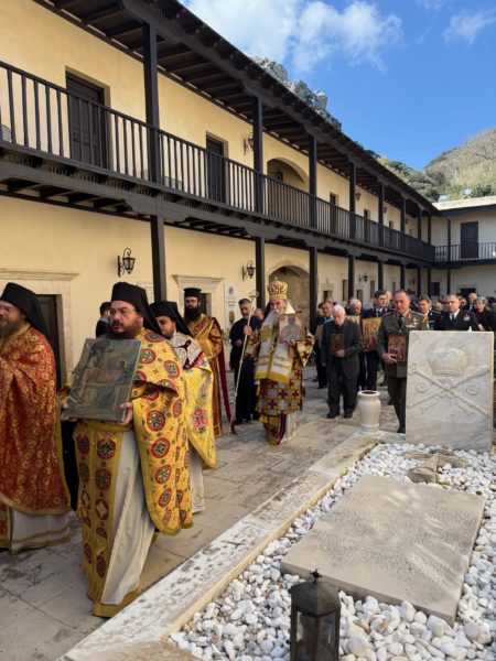 Της πανηγυρικής Θείας Λειτουργίας ακολούθησε η λιτάνευσις των Ιερών Εικόνων, πέριξ του Καθολικού της Μονής και, εν συνεχεία στην παρακείμενη Ορθόδοξο Ακαδημία Κρήτης, η, από πολλών ετών, καθιερωμένη εορτή του Ιδρύματος με ομιλητή τον Δρ. Εμμανουήλ Βαρβούνη, Καθηγητή Λαογραφία, Κοσμήτορα της Σχολής Κλασικών και Ανθρωπιστικών Σπουδών του Δ. Π. Θ., Άρχων της Α.τ.Χ.Μ.Ε., με θέμα: «ΟΡΘΟΔΟΞΙΑ ΚΑΙ ΕΛΛΗΝΙΣΜΟΣ: Η δυναμική της λαϊκής θρησκευτικότητας».
