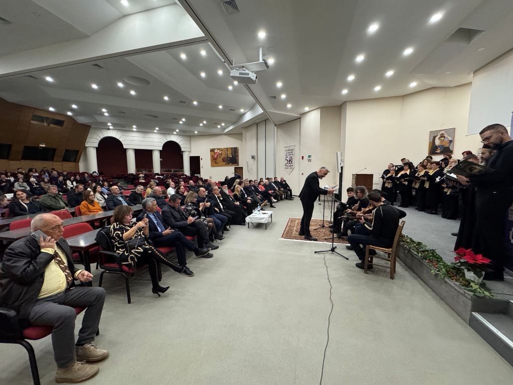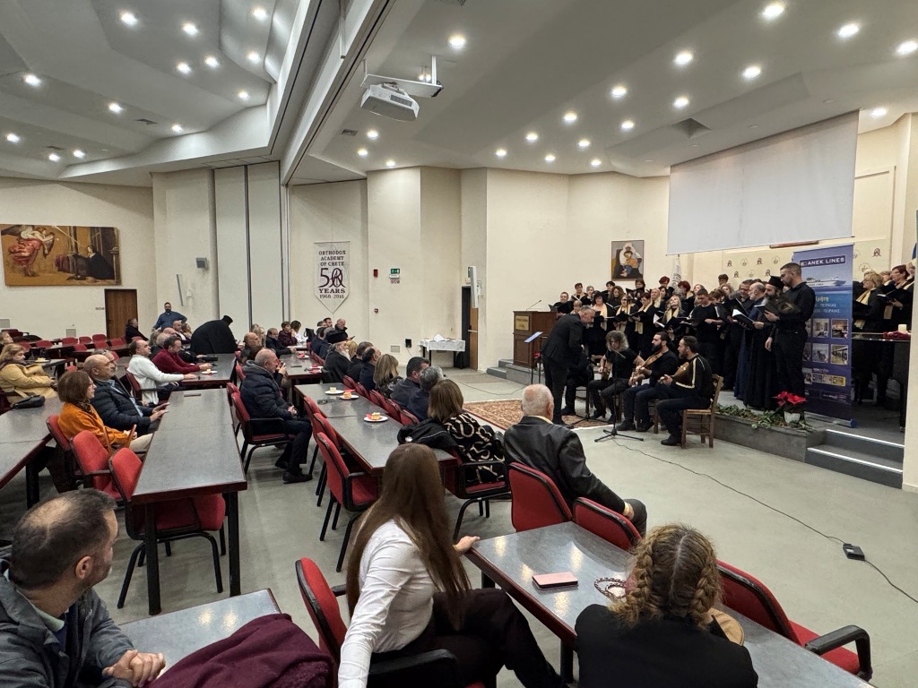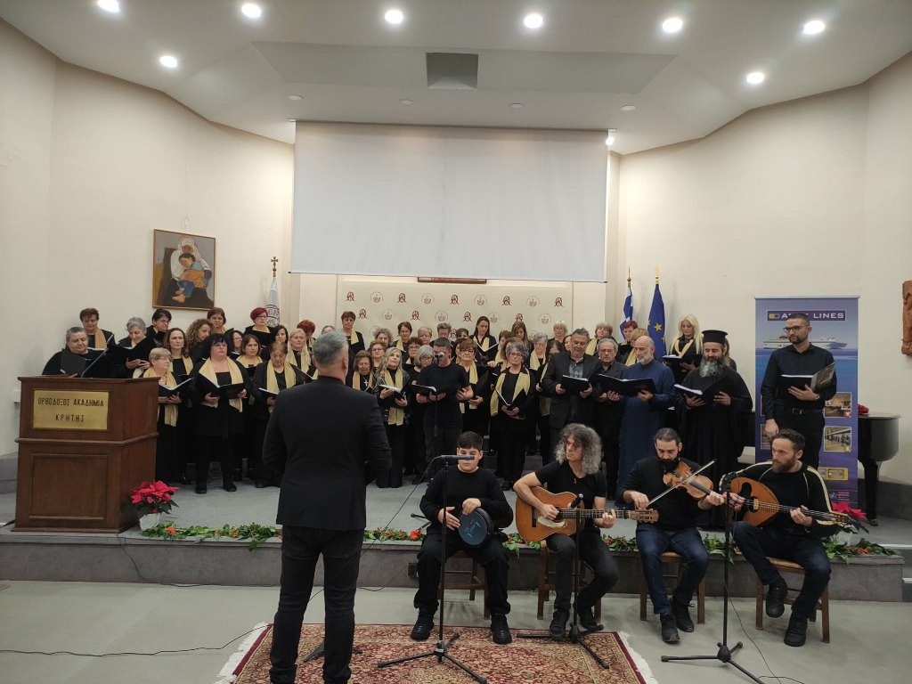Η Βυζαντινή και Παραδοσιακή Χορωδία του Ωδείου της Ι. Μητροπόλεως μας «Άγιος Νικηφόρος ο Κρης», υπό την διεύθυνση του χοράρχη κ.Γεωργίου Χαχλάκη, απέδωσε αριστοτεχνικά, πρωτοχρονιάτικα κάλαντα από διάφορες περιοχές της Ελλάδας. Αγιοβασιλόπιτα και εόρτια κεράσματα προσφέρθηκαν σε όλους τους μετέχοντες, μερίμνη της Ακαδημίας.