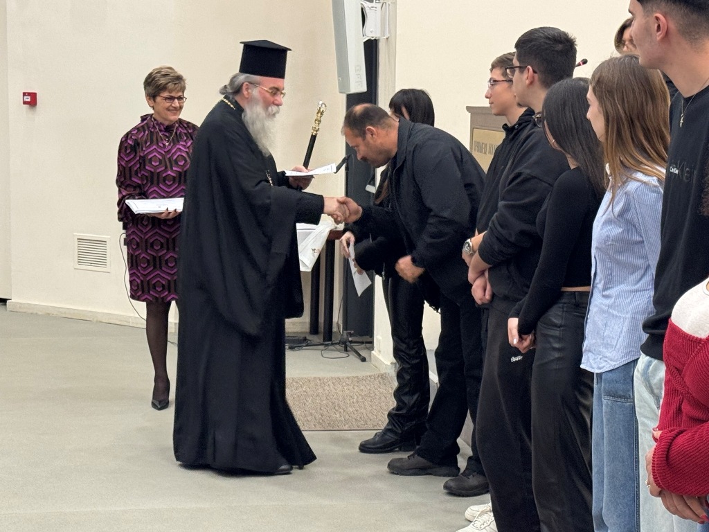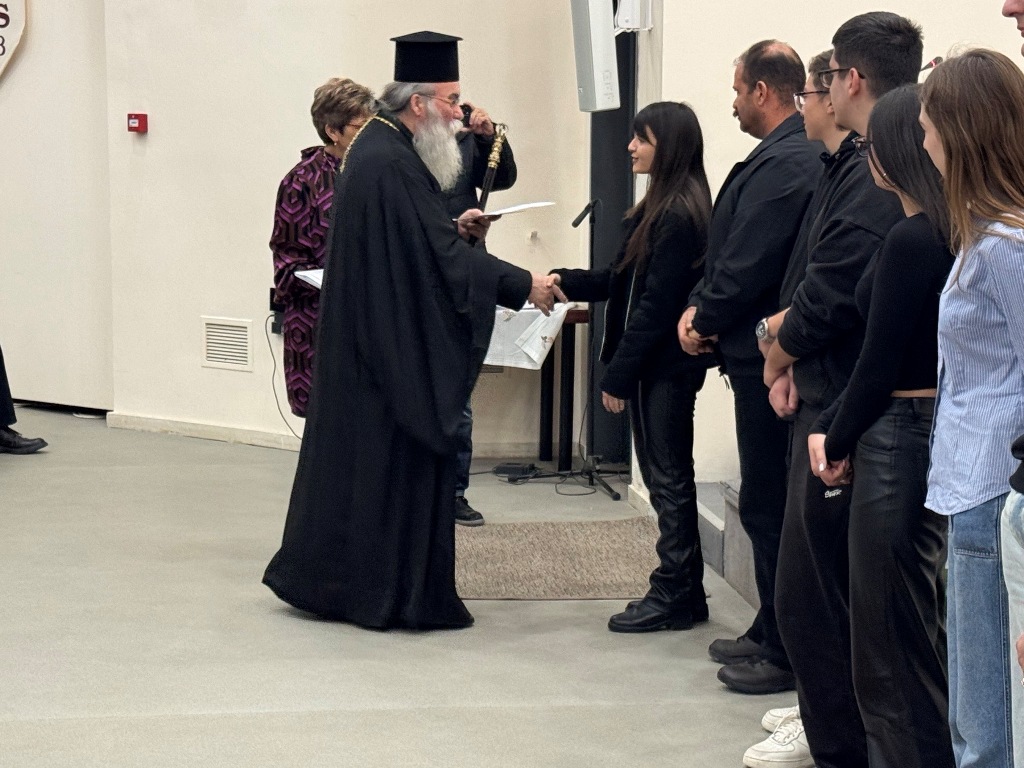 Σας αξίζει μια καλύτερη κοινωνία, την οποία καλείστε εσείς να χτίσετε και να δημιουργήσετε, αφού αυτό που παραλαμβάνετε χωλαίνει σε πιστεύω, αξίες, ιδανικά και οράματα», κατέληξε ο Επίσκοπος μας, συγχαίροντας τους Γονείς, Εκπαιδευτικούς και συγγενείς των παιδιών που είχαν κατακλύσει το αμφιθέατρο της Ακαδημίας, ευχόμενος «να χαίρονται τα παιδιά τους, να τα καμαρώνουν βλέποντας τα να ανεβαίνουν τα σκαλοπάτια της ζωής».