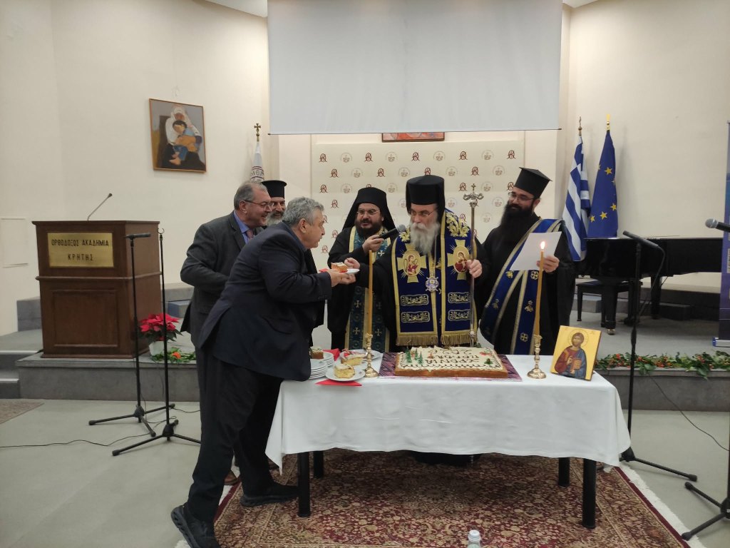 Το εσπέρας της εορτής των Θεοφανείων πραγματοποιήθηκε, στην Ορθόδοξο Ακαδημία Κρήτης, η καθιερωμένη, από πολλών ετών εορταστική εκδήλωση, σε συνεργασία με τον Δήμο Πλατανιά, κοπή Αγιοβασιλόπιτας της Ακαδημίας και βράβευση των εισαχθέντων σε Ανώτατα και Ανώτερα Εκπαιδευτικά Ιδρύματα, μαθητών/μαθητριών εκ της Δημοτικής Ενότητας του Δήμου Πλατανιά.