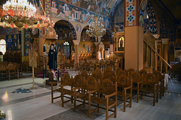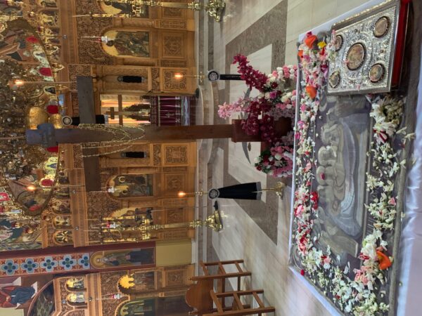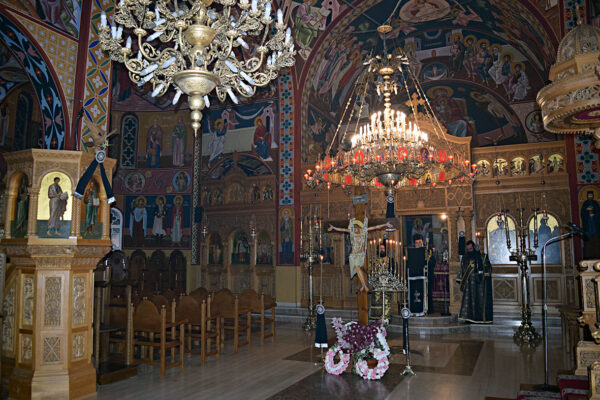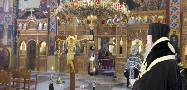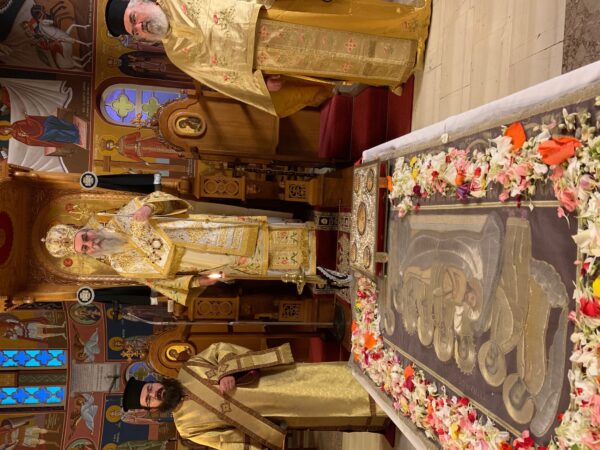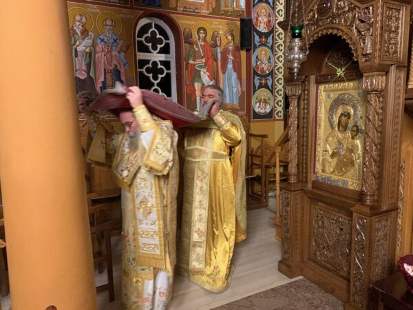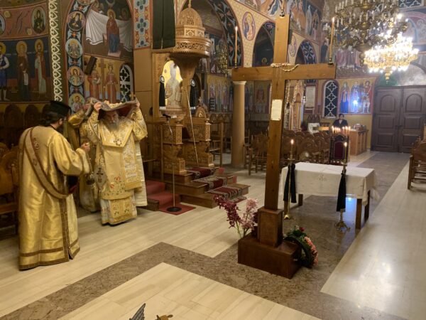 Στο τέλος των Εγκωμίων λιτάνευσε το νεκρό Σώμα του Ιησού εντός του Ναού και μνημόνευσε πλειάδα ονομάτων κεκοιμημένων αδελφών. Κατά τη διάρκεια της ομιλίας του ανέφερε ο Σεβασμιώτατος: «Κατέρχεται ο Χριστός στον τάφο, στον άδη, για να παλέψει με τον θάνατο. Από την πάλη αυτή εξέρχεται νικητής, ελευθερώνοντας τον άνθρωπο από τα δεσμά του άδη. Σε καιρούς όπου ο φόβος κυριαρχεί στις ψυχές και τις καρδιές μας, στα μετέωρα βήματα ενός κόσμου που απειλείται από έναν αόρατο εχθρό, κορωνοϊό τον ονόμασαν, στην καθημερινότητα που μας τρομάζει, σε μια εποχή μεγάλης αξιοκρατικής σύγχυσης και παγκόσμιων τρομακτικών αλλαγών, περισσότερο από άλλοτε έχουμε ανάγκη από την βεβαιότητα που χαρίζει η πίστη στην Ανάσταση του Χριστού. Βίωμα και εμπειρία δύο και πλέον χιλιάδων χρόνων. Ρίσκο και τρέλα για κάποιους. Παραμύθι για τους σταυρωτές των αιώνων. Άνοιξη, φως και ζωή για όσους ελεύθερα και αβίαστα γεύονται αυτή την εμπειρία που μυστικά και καρδιακά, έστω και «των θυρών κεκλεισμένων» χαρίζει η παρουσία του Χριστού στην ζωή τους, στην ζωή μας». Στη συνέχεια ευχήθηκε “Καλή Ανάσταση σε όλους”.