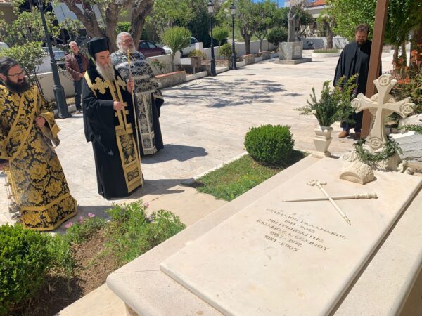 Μετά την Ακολουθία της Αποκαθηλώσεως που τελέστηκε στον Ιερό Μητροπολιτικό Ναό του Ευαγγελισμού της Θεοτόκου με αναμετάδοση από τον τοπικό Ραδιοφωνικό Σταθμό (Ράδιο Ριζίτες 92,4) ο Σεβασμιώτατος Μητροπολίτης Κισάμου και Σελίνου τέλεσε Τρισάγιο επί του τάφου του αοιδίμου προκατόχου του Μητροπολίτου κυρού Ειρηναίου, ο οποίος ευρίσκεται εις τον προαύλιο χώρο του Ι. Μητροπολιτικού Ναού.
