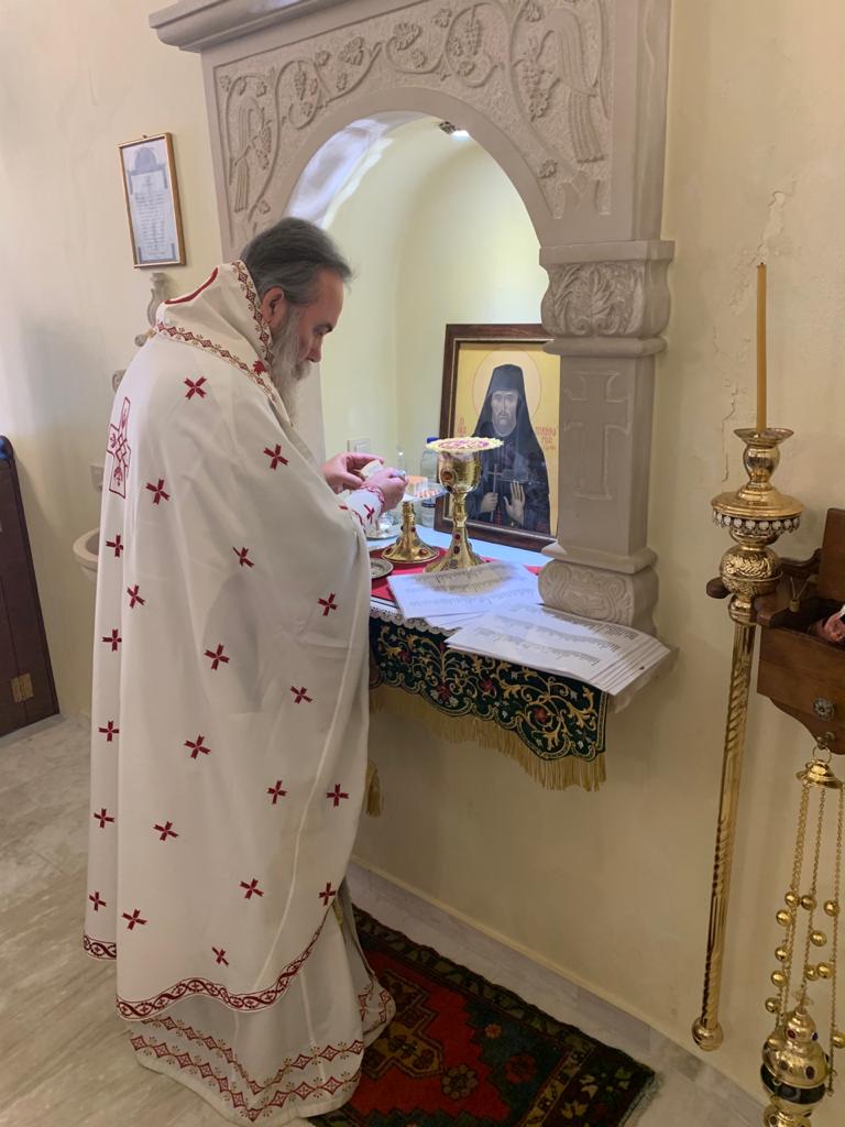 Ο Σεβασμιώτατος τέλεσε (ως Ιερεύς) Θεία Λειτουργία, συλλειτουργούντων αδελφών εκ της Ι. Πατριαρχικής Μονής Γωνιάς. Στο τέλος δε αναπέμφθηκε ειδική δέησις-προσευχή της Ι. Επαρχιακής Συνόδου της Εκκλησίας Κρήτης: «υπέρ ιάσεως των εκ της πανδημίας ασθενούντων, ενισχύσεως των Ιατρών, Νοσηλευτών και αιωνίου μνήμης των εκ της νόσου τελειωθέντων».