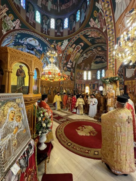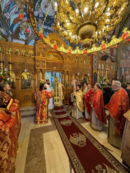 Απευθυνόμενος προς το πυκνό εκκλησίασμα σημείωσε: «Ο ιερός Χρυσόστομος δίδει απάντηση σε όσους διερωτώνται και θέτουν το δίλλημα: «η παπάς-παπάς, ή ζευγάς-ζευγάς», καθώς ο παπάς είναι και ζευγάς, αφού αποστολή του είναι να γίνεται ζευγολάτης στο αλώνι της ψυχής του ανθρώπου. Ως αγγελιοφόρος του Θεού να σπέρνει τον θείο λόγο Του, να εξαγγέλλει το θέλημα Του, να κηρύσσει την μετάνοια και να οδηγεί τον πιστό στην εν Χριστώ ζωή και σωτηρία. Δηλαδή να ελευθερώνει τον άνθρωπο από τα πάθη και τις αδυναμίες του και να τον οδηγεί στην Βασιλεία του Θεού. Και παπάς και ζευγάς λοιπόν η απάντηση της Εκκλησίας, η Οποία 2000 και πλέον χιλιάδες χρόνια λιτανεύει την χάρι και το έλεος του Θεού στον κόσμο, μεταμορφώνοντας τον σε Εκκλησία, δηλαδή σε Ανέσπερο Φως, εν αντιθέση με τα πάσης φύσεως συστήματα, ιδεολογίες, θεωρίες και φιλοσοφίες, οι οποίες ανήμπορες και ανίκανες να συμβάλουν στην μεταμόρφωση του κόσμου και του ανθρώπου, γαντζωμένες στην εξουσία τους, τείνουν να επιβάλλουν τα πιστεύματα τους, τα οποία όμως κονιορτοποιούνται ενώπιον της ιστορίας και του θανάτου», καλώντας το πυκνό εκκλησίασμα «…όπως αντισταθεί σε ό,τι αλλοιώνει και αλλοτριώνει την πίστη και τον πολιτισμό μας».