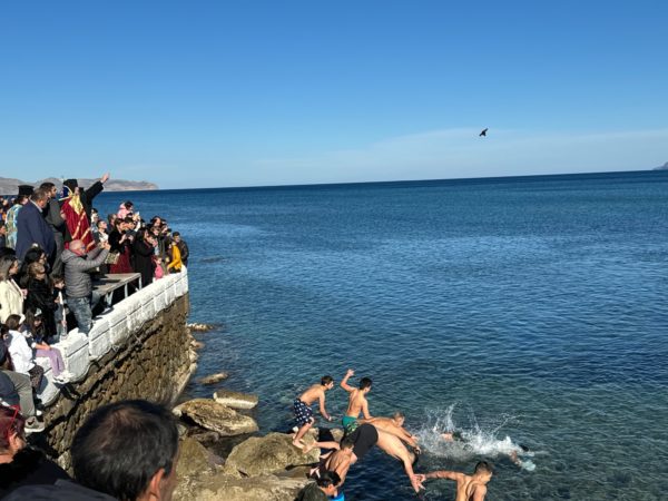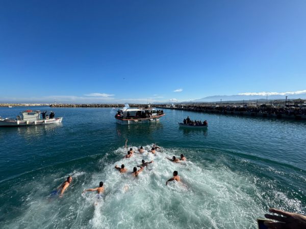 Συγκινητική η συμμετοχή δεκάδων νέων, παιδιών και ενήλικων, που βούτηξαν στα γαλανά και καθαρά νερά της Κισάμου και, με ιδιαίτερη ευλάβεια και δέος, προσκύνησαν τον Τίμιο Σταυρό, λαμβάνοντας από τον Σεβ. Ποιμενάρχη κ. Αμφιλόχιο, ο μεν πρώτος από κάθε ρίψη από ένα χρυσό Σταυρό, οι δε λοιποί από ένα Σταυρό λαιμού.