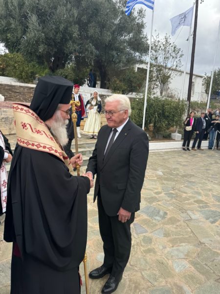 Προ του «Δι΄ ευχών», ο Σεβασμιώτατος κ. Αμφιλόχιος απευθύνθηκε προς τον κ. Πρόεδρο της Ομοσπονδιακής Δημοκρατίας της Γερμανίας «Ως ο πνευματικός ταγός αυτού του αδούλωτου και απροσκύνητου λαού» χαιρετίζοντας την έλευση στην μαρτυρική και ιστορική Κάντανο και συνέχισε: «Δράττοντας την ιστορική αυτή παρουσία και ευκαιρία αισθάνομαι χρέος ιερό να μνημονεύσω το τι ακολούθησε από τον περήφανο λαό της Κρήτης αλλά και από την Εκκλησία της Κρήτης και πως συμπεριφέρθηκε και μετά από τον πόλεμο».