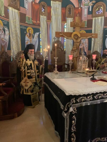 Κατά τη διάρκεια της Προηγιασμένης Θείας Λειτουργίας τέθηκε προς προσκύνηση τεμάχιο Ιερού Λειψάνου του οσίου πατρός ημών Αμφιλοχίου του Πατμίου. Ο ιερουργών Ιεράρχης αναφερόμενος εις τον βίο και την πολιτεία του Οσίου Αμφιλοχίου σημείωσε: «Η χάρις του Θεού φανερώνει, στους αποκαλυπτικούς καιρούς μας, ιερά πρόσωπα οσίων και αγίων της πίστεως μας, επιστηριγμό του αγώνα και της πνευματικής μας ζωής, αντίδοτο της ολιγοπιστίας μας.