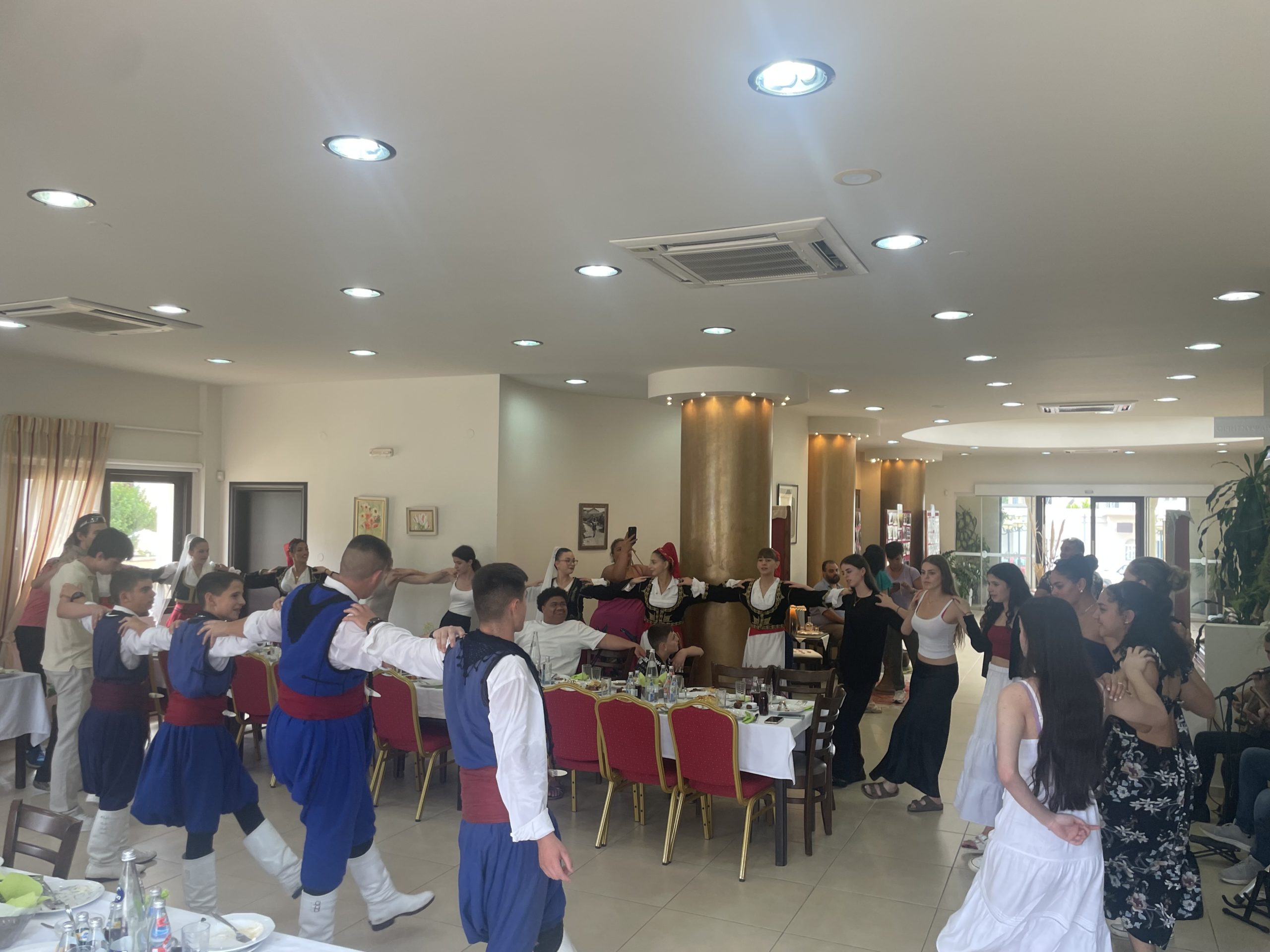Ακολούθησε πλούσια φιλοξενία και παραδοσιακοί χοροί της Κρήτης από το χορευτικό συγκρότημα «Η Κίσαμος» της κας Άλκηστης Ξηρουχάκη, όπου τα παιδιά της Κισάμου χόρεψαν και χάρηκαν με τα παιδιά από την Νέα Ζηλανδία, τόσο που ζητούσαν να μην σταματήσουν οι χοροί. Ο Μητροπολίτης κ. Αμφιλόχιος προσέφερε σε όλους Εικόνα της Παναγίας «της Γιάτρισσας».