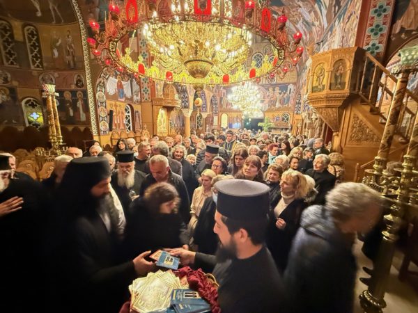 Στο πλήθος των προσκυνητών που είχαν κατακλύσει τον Ι. Μητροπολιτικό Ναό Ευαγγελισμού της Θεοτόκου ο π. Αιμιλιανός προσέφερε, ευλογία της Ιεράς Μονής Κουδουμά, Εικόνα της Παναγίας μετά των Οσίων Παρθενίου και Ευμενίου των κτιτόρων και του Οσίου Ευμενίου του νέου, μετά Ιερού Παρακλητικού Κανόνος των Οσίων Παρθενίου και Ευμενίου.