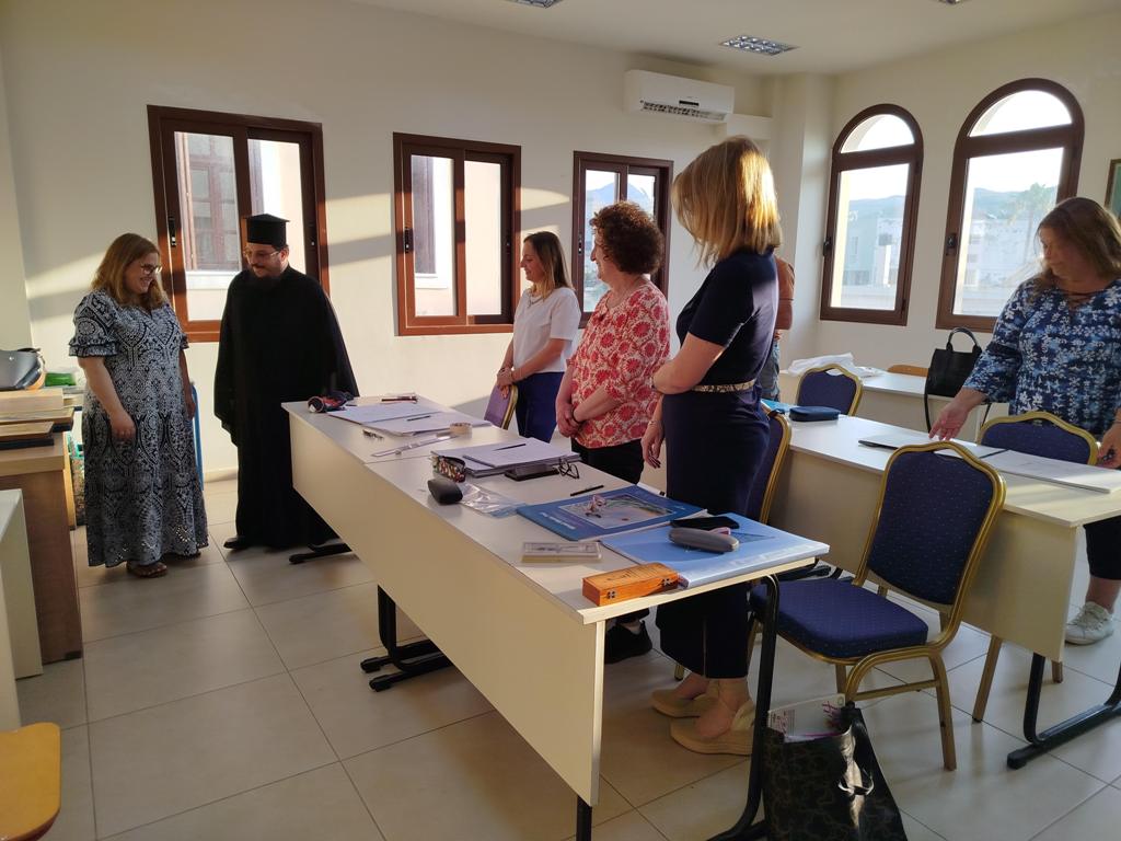 Ο φετινός κύκλος σπουδών-εκμάθησης Αγιογραφίας ολοκληρώθηκε, με επιτυχία. Στο κλείσιμο του έτους τον Σεβ. Μητροπολίτη Κισάμου κ. Αμφιλόχιο εκπροσώπησε ο Πρωτοσύγκελλος της Ιεράς Μητροπόλεως, Παν. Αρχ. π. Αγαθάγγελος, ο οποίος μετέφερε τις ευχές και την αγάπη του οικείου Επισκόπου, ως και τα ολόθυμα ευχαριστήρια του προς την διδάσκουσα της Σχολής κ. Κωνσταντίνα Στεφανάκη, έμπειρη Αγιογράφο, επιστημονική συνεργάτιδα της Ορθοδόξου Ακαδημίας Κρήτης, η οποία καθ΄ όλα αυτά τα έτη προσφέρει, με αγάπη και εθελοντικά, τις γνώσεις και την εμπειρία της στο πλήθος των μαθητών/μαθητριών που έχουν ολοκληρώσει τον τριετή κύκλο σπουδών, αρκετοί από τους οποίους συνεχίζουν να ασχολούνται με την Αγιογραφία, ευχόμενος «ένα ευλογημένο και ασφαλές θέρος», ενημερώνοντας πως η Σχολή Αγιογραφίας θα συνεχίσει την λειτουργία της και το επόμενο έτος.