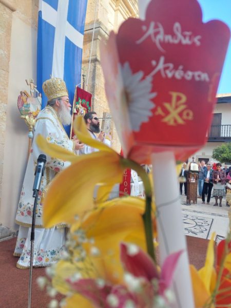 Ιδεολογήματα και ‘οράματα’, όπως τα ονομάζουν, που κρημνίζουν κάθε έννοια ηθικής, αξίας και ποιότητας ζωής, υποσχόμενοι μάλιστα ριζική αναγέννηση σε ένα κόσμο ελκόμενο, που αιμορραγεί ποικιλοτρόπως», ανέφερε ο Σεβ. Μητροπολίτης Κισάμου και Σελίνου κ. Αμφιλόχιος, ευχόμενος όπως «Το μεγάλο αυτό πανηγύρι της χαράς, αυτό το Πάσχα, το Πάσχα του 2024, γίνει για όλους μας ευκαιρία να καταστούμε μάρτυρες της αιώνιας αλήθειας ότι ‘Ηγέρθη ο Κύριος όντως’ για να βιώσουμε, μυστικά στην καρδία μας, την μόνη εμπειρία που νικά τον θάνατο ότι ‘Εωράκαμεν τον Κύριον’».