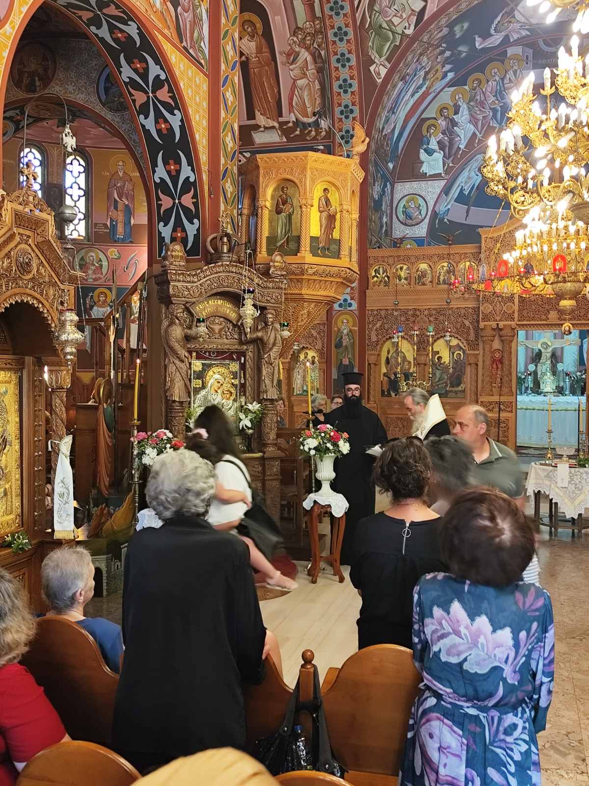 Ακολούθως αναφέρθηκε στην αγιαστική δύναμη του Αγιασμού, μνημονεύοντας την παραγγελία του Αγίου Λουκά, Αρχιεπισκόπου Κριμαίας «Πίνετε Αγιασμό, όσο πιο συχνά, τόσο πιο καλά. Είναι το καλύτερο και αποτελεσματικότερο φάρμακο. Αυτό δεν το λέω σαν παπάς, το λέγω σαν γιατρός, από την ιατρική μου πείρα», προτρέποντας τους πολυπληθείς προσκυνητές «Να αρχίζουν την μέρα τους τηρώντας την παραγγελία του Αγίου Λουκά». Είχε προβλεφθεί, κατά την έξοδο, όσοι επιθυμούσαν να πάρουν Αγιασμό.