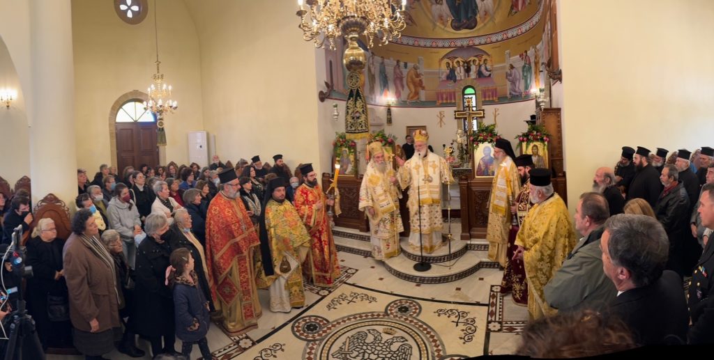 Της Θείας Λειτουργίας προεξήρχε ο Σεβ. Μητροπολίτης Αρκαλοχωρίου, Κατελλίου και Βιάννου κ. Ανδρέας, συλλειτουργούντων του Σεβ. Μητροπολίτου Κυδωνίας και Αποκορώνου κ. Δαμασκηνού, του Θεοφ. Επισκόπου Ταλαντίου κ. Επιφανίου και του επιχωρίου Μητροπολίτου, Σεβ. Κισάμου και Σελίνου κ. Αμφιλοχίου.