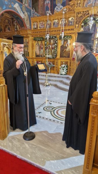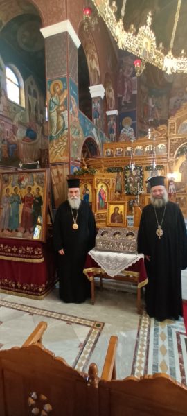Εκεί ανέμενε ο Σεβ. Ποιμενάρχης, Μητροπολίτης Γορτύνης και Αρκαδίας κ. Μακάριος, ο οποίος με λόγους αγαπητικούς και θερμούς, υποδέχθηκε και καλωσόρισε τον συνοδό Ιεράρχη κ. Αμφιλόχιο, τους Κληρικούς που τον συνόδευαν ως και το πλήθος των προσκυνητών.