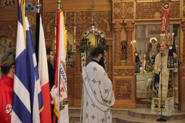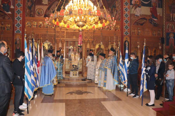 «Χρέος εθνικό, σημείωσε, ανάγκη επιτακτική και ευθύνη όλων μας οι επετειακοί αυτοί εορτασμοί να μην περιοριστούν σε εκδηλώσεις και δράσεις αλλά να λειτουργήσουν αφυπνιστικά στις ψυχές και τις καρδιές μας υπενθυμίζοντας το χρέος και την ευθύνη να φυλάττουμε Θερμοπύλες. Πίστη και Πατρίδα, Ελλάδα και Χριστός τα λάβαρα που ύψωσαν οι γεννήτορες μας ενάντια στον κατακτητή της εποχής. Στις κτήσεις, αλώσεις και αλλοτριώσεις των καιρών μας τα ίδια λάβαρα καλούμεθα να ορθώσουμε και να υψώσουμε, παραμένοντες σταθεροί στα ιδανικά που γαλούχησαν την αθάνατη Ελληνική ψυχή. Αυτή είναι η ταυτότητα μας και, εάν θέλουμε να φανούμε αντάξιοι απόγονοι των ηρωικών προγόνων μας, οφείλουμε να κλείσουμε ερμητικά την όποια κερκόπορτα απειλεί την ιδιοπροσωπία μας», κατέληξε ο Επίσκοπος, καλώντας το εκκλησίασμα όπως συμψαλλει τον Εθνικό μας Ύμνο.