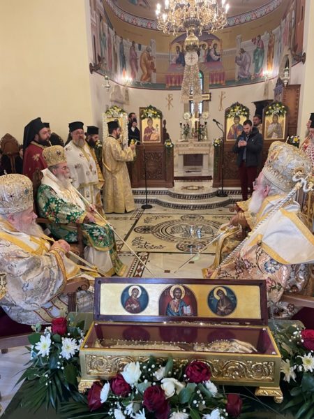Ευχαρίστησε, τέλος, του διακονητές του ι. προσκυνήματος, με αναφορά εις τον υπεύθυνο Παν. Αρχ. π. Χρύσανθο, αδελφό της Ι. Πατριαρχικής Μονής Γωνιάς. Χιλιάδες τα ονόματα που μνημονεύθηκαν το εόρτιο διήμερο, τόσο κατά τις Ι. Παρακλήσεις, όσο και κατά την πανηγυρική Θεία Λειτουργία.