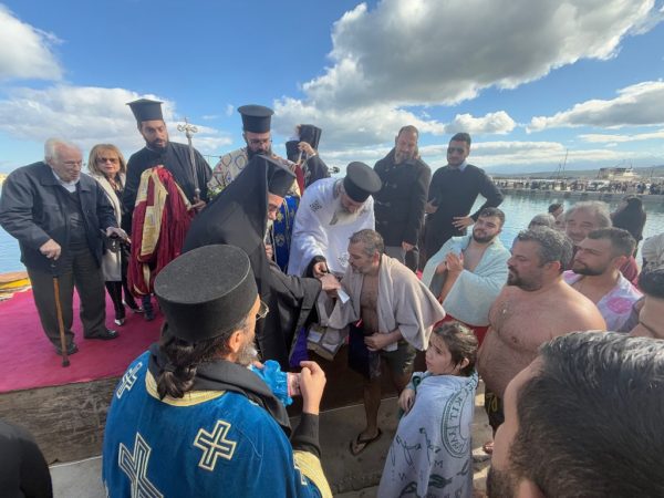 Ας γίνει η σημερινή αυτή ημέρα της Θείας Επιφανείας αιτία-καιρός για όλους μας ανοίγματος των ψυχών και των καρδιών μας στο φως της γνώσεως και της αγάπης του Θεού. Για να διαλυθούν τα σκοτάδια της αγνωσίας μας, της αμφιβολίας και απιστίας μας», κατέληξε ο οικείος Επίσκοπος, επαινώντας τους δεκάδες ‘κολυμβητές’ που αψήφησαν τα παγωμένα νερά και βούτηξαν στην θάλασσα για την ευλογία του Τιμίου Σταυρού, σημειώνοντας «Όσο θα υπάρχουν νέοι και νέες, Ορθόδοξα νιάτα, που νιώθουν την ανάγκη της υπέρβασης, στο όνομα της πίστης, καθώς το βούτηγμα σε παγωμένα νερά στην καρδιά του χειμώνα, τι άλλο παρά υπέρβαση είναι, τόσο θα στερεώνεται η πίστη στον Χριστό και την Εκκλησία Του».